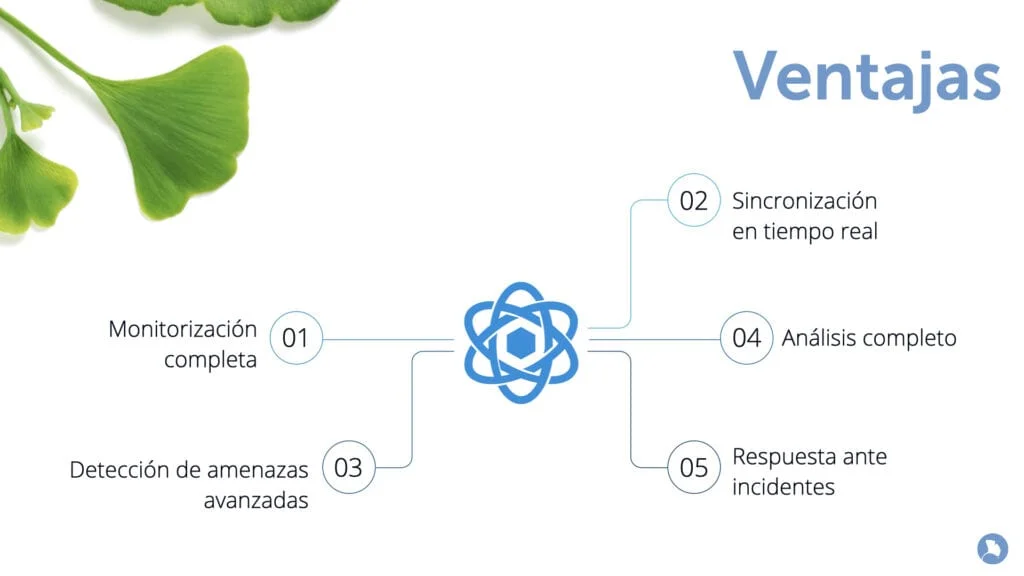 Otra de las ventajas sería la detección de amenazas avanzadas que puedan tener distintos vectores de entrada o afectaciones en soluciones diferentes.